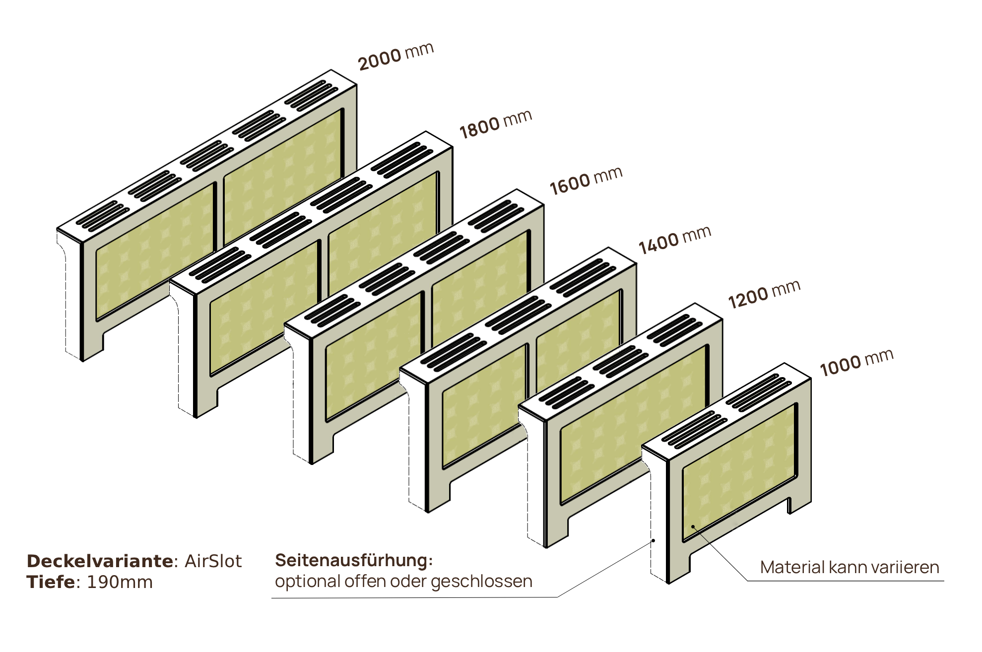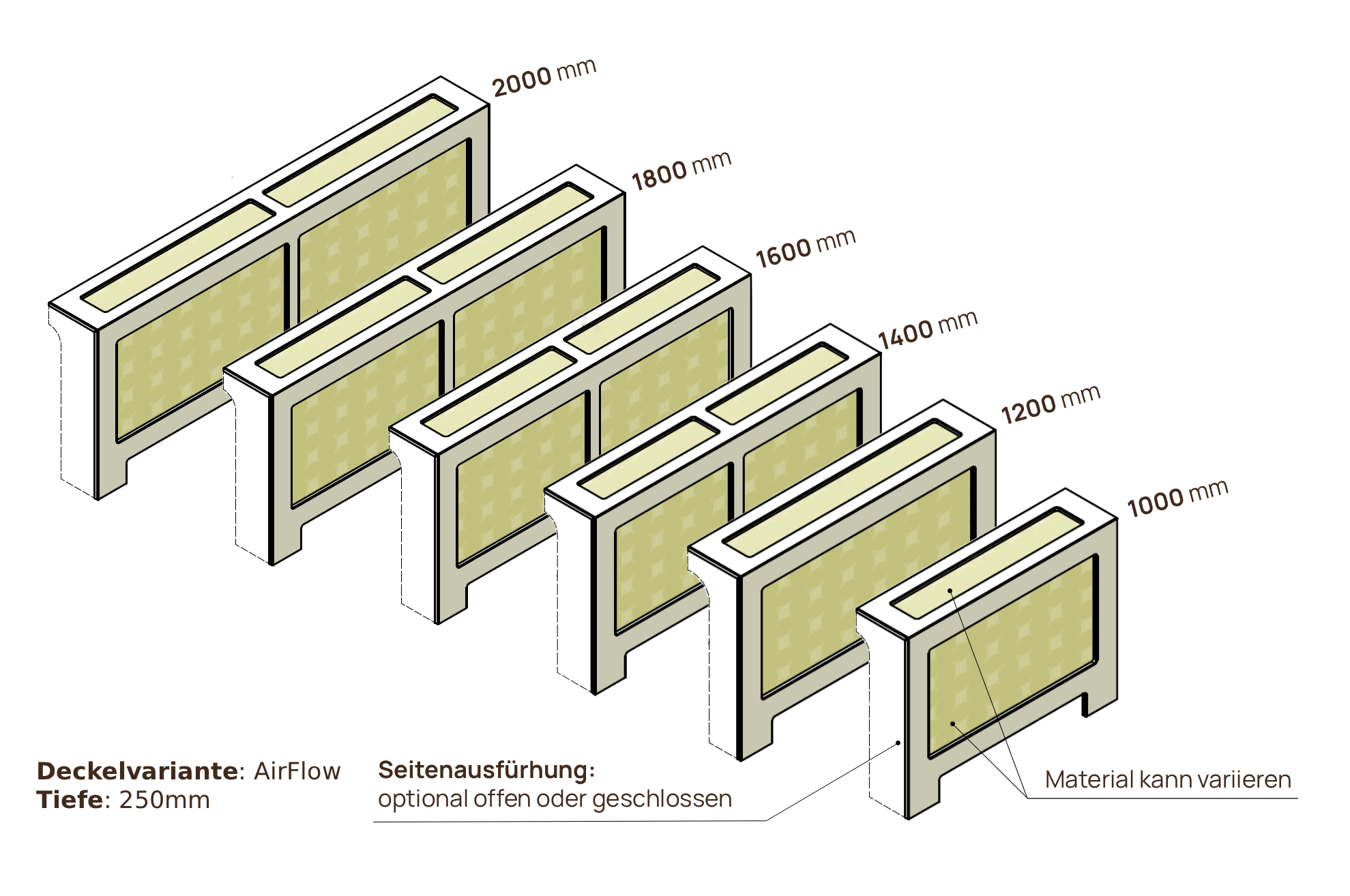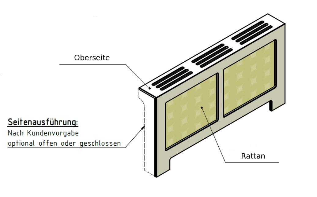 Ja. Standard ist links und rechts offen und mit einem AirSlot Top ‒ auf Wunsch aber auch einseitig oder beidseitig geschlossen und mit einem AirFlow Top.